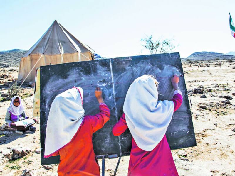 Niñas nómadas estudian en escuelas móviles en las montañas para adquirir habilidades básicas de escritura y aritmética.