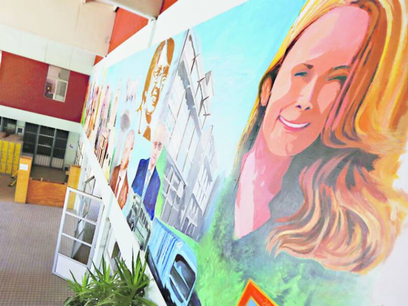 Indicó que en el liceo también hay un mural de Michelle Bachelet como primera Presidenta de Chile.