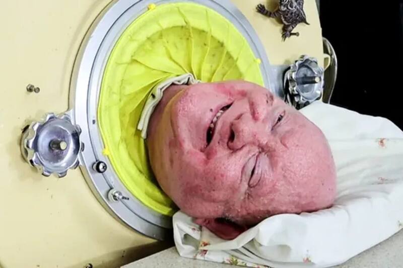 Debido a esto, lo colocaron en un llamado “pulmón de acero”, un cilindro de metal en el que se encierra a la persona hasta el cuello y les permite respirar.