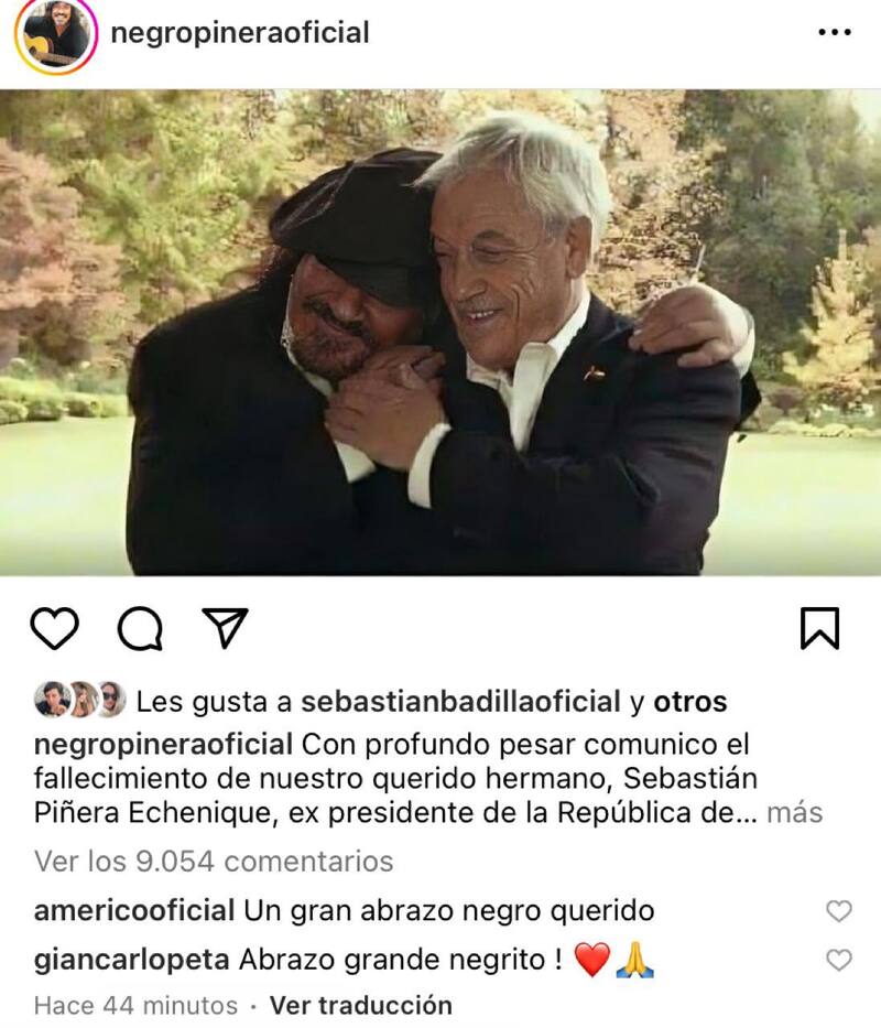 Uno de los mensajes más esperados, es el de su hermano, Miguel, conocido como “Negro” Piñera, quien le dedicó un sentido mensaje tras la inesperada muerte.