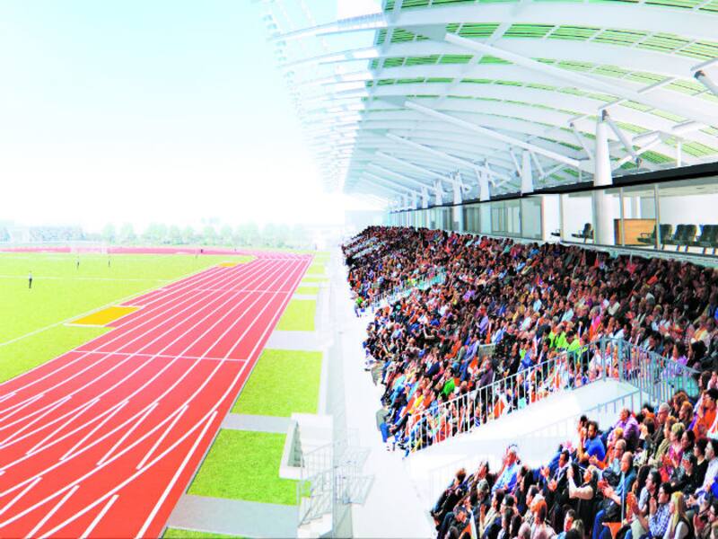 La pista atlética de 400 metros contará con 8 carriles, además de foso de salto largo y triple, salto alto, salto con garrocha, lanzamiento de la jabalina, lanzamiento de la bala, lanzamiento del disco, lanzamiento del martillo y foso de steeplechase. En tanto, la cancha de fútbol tendrá un alto nivel de utilización y en cualquier época del año. Costo: $1.563 millones.