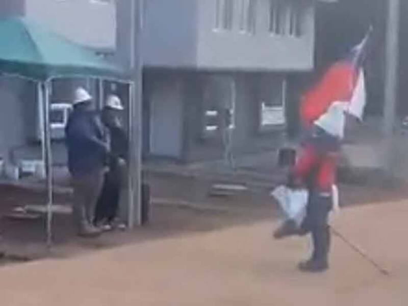 Trabajadores de la construcción dieron un gran ejemplo de patriotismo y sentido del humor.