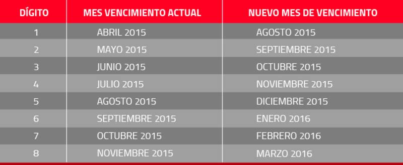 Esto significará que las patentes que terminen en los dígitos 1, 2, 3, 4, 5, 6, 7 y 8, tendrán cuatro meses a contar del vencimiento de su certificado para realizar este trámite.