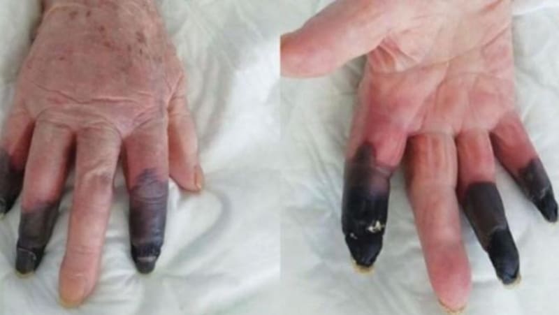 La mujer de 86 años, según la publicación, no tenía enfermedades de base y se contagió el pasado 9 de marzo. Tras su hospitalización y notar lo que ocurría en sus manos, los médicos optaron por realizar una histopatología (examen de tejidos), que arrojó como resultado una trombosis intravascular a causa de la infección con el SARS-CoV-2.