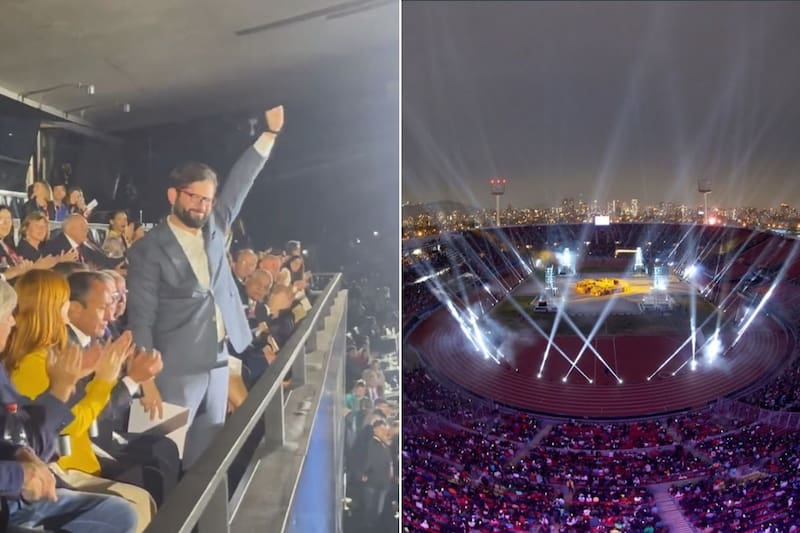 Aplausos, gritos y uno que otro silbido se oyó en el Estadio Nacional cuando se dio la bienvenida al Presidente Gabriel Boric, en la ceremonia de inauguración de los Juegos Panamericanos y Parapanamericanos Santiago 2023.
