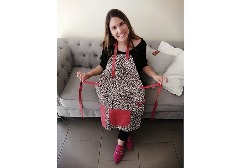 Pamela comenta que lo que se hereda no se hurta y que lleva el gusto por el diseño y el cuero en la sangre: "Crecí entre cueros y zapatos, desde chica en la fábrica de mi papá y mi tío. Como diseñadora siempre quise darle otras utilidades al cuero, además de los zapatos. Así empecé a crear delantales para los amantes de los asados y la cocina, son hechos con mucho amor y dedicación".