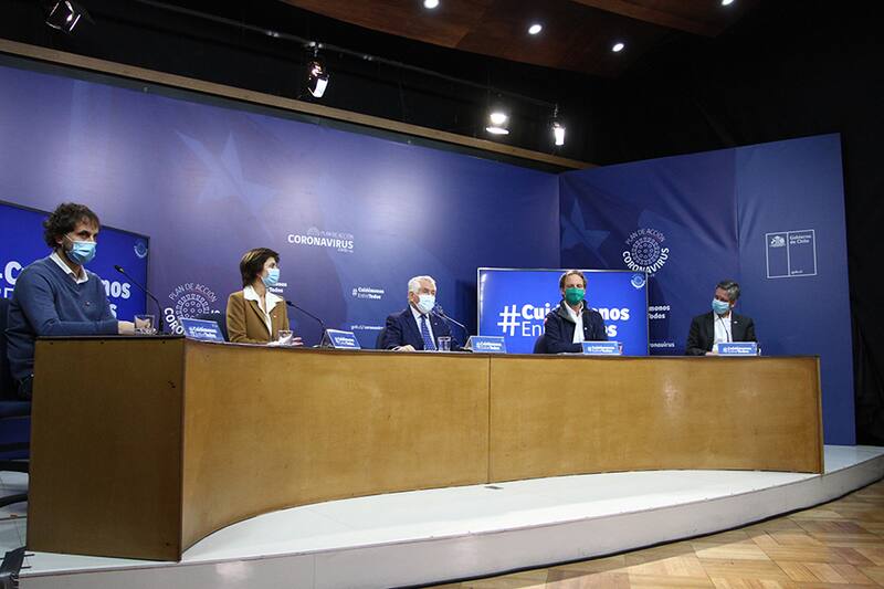 El secretario de Estado llegó cerca de las 10.30 de la mañana a La Moneda. Sin embargo, fue a la 1 de la tarde exacta cuando salió a entregar las cifras frente a las cámaras de tevé, en una panel estilo matinal, siendo acompañado por los subsecretarios Arturo Zúñiga y Paula Daza; además del doctor Tomás Regueira, presidente de la Sociedad Chilena de Medicina Intensiva, y el doctor Rafael Araos, jefe del Departamento de Epidemiología del Minsal.