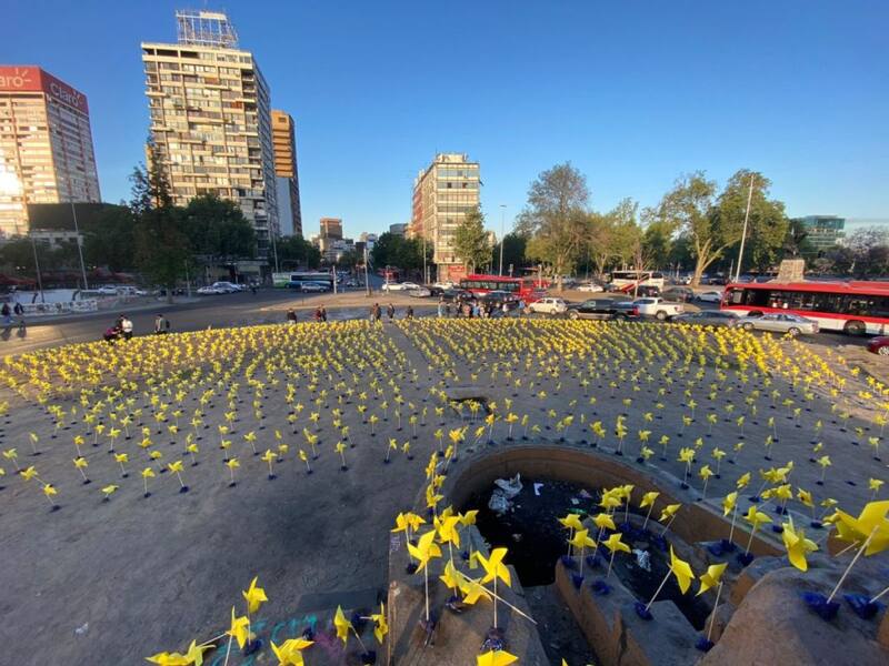 En ese lugar, optó por instalar cientos de remolinos amarillos.