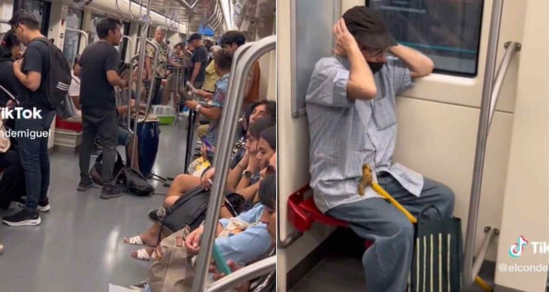 Masivo repudio generó un registro que muestra la reacción de un adulto mayor que optó por taparse los oídos debido a la “presentación” de una banda callejera al interior de un vagón del Metro de Santiago.