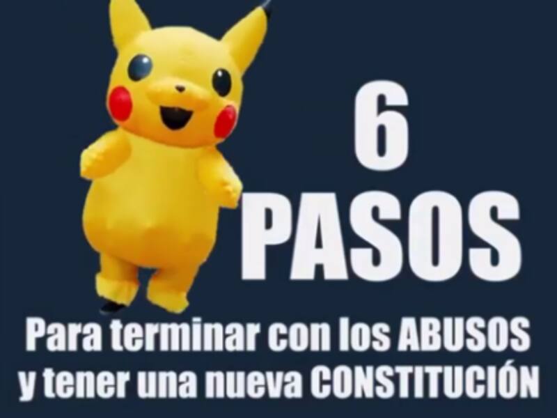 - Paso 1: Reforma constitucional para llamar a un plebiscito", en el primer paso se ve al "Baila Pikachu", personaje que se hizo viral en las manifestaciones.
