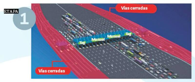 La primera semana de abril se cerrarán 8 casetas, las del centro del peaje. De esta forma, quedarán 20 casetas en total operativas hasta las vacaciones de invierno.[/caption]