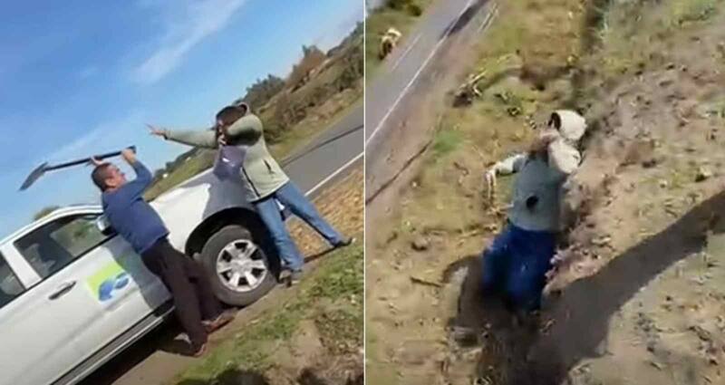 Tal como se puede ver en uno de los videos, la dirigenta termina cayendo en una zanja, de la cual no se podía parar. Segundos antes, el hombre incentivaba a su hermana para golpear a Sandra e incluso la amenazó con una pala.