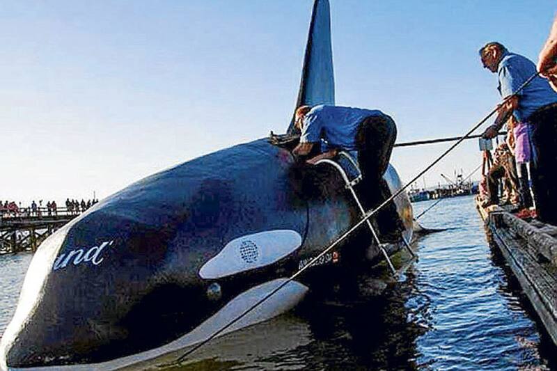 Pescador ganó concurso con orca mecánica que espanta lobos marinos