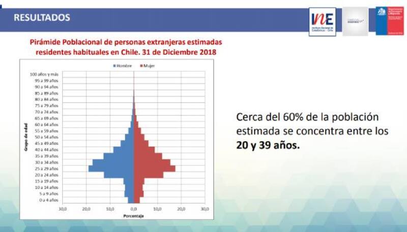 El Instituto Nacional de Estadísticas (INE) reveló este jueves que la población de extranjeros residentes en Chile suman un total de 1.251.225 personas, lo que equivale al 6,6% de la población total del país.