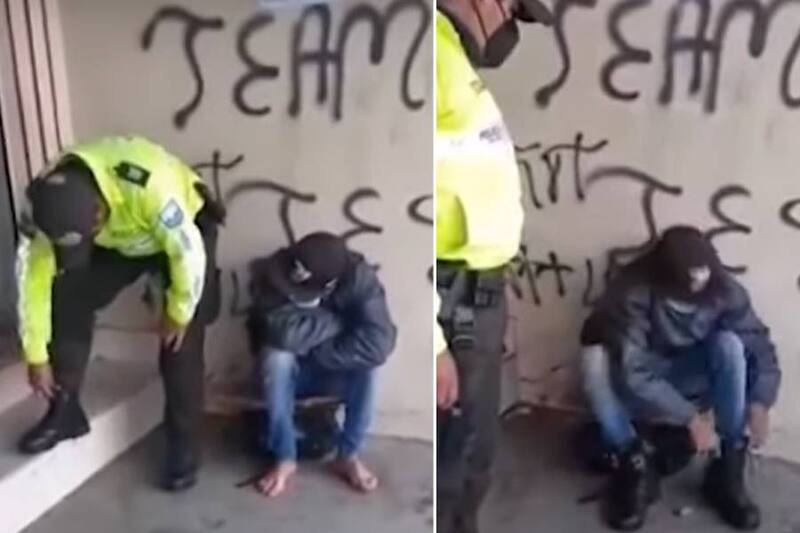 El adolescente, que se encontraba descalzo en la vía pública, recibió de regalo los zapatos del oficial.