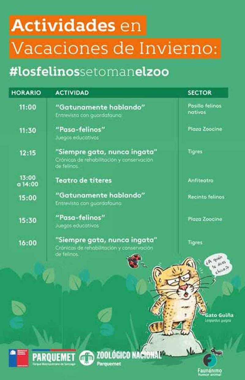 Por otra parte, con el slogan #losfelinossetomanelzoo, el Zoológico Nacional preparó también para estas fechas una serie de actividades para los escolares en vacaciones de invierno.