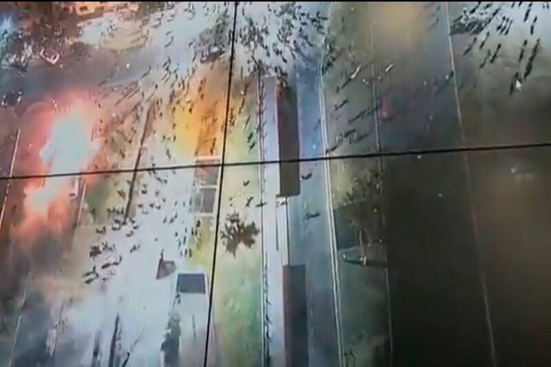 Incluso, un vehículo de Fuerzas Especiales de Carabineros fue alcanzada por una bomba incendiaría en su parte exterior, prendiéndose este de fuego.
