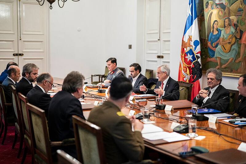 El Presidente Sebastián Piñera se reunió, a partir de las 19 horas, con el Consejo de Seguridad Nacional (Cosena) en el palacio de gobierno para solicitar colaboración con el objeto de enfrentar el estallido social.