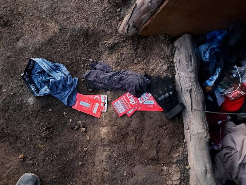 Allí, como se aprecia en las fotografías, la policía encontró chips de celulares, ropa y elementos de supervivencia.