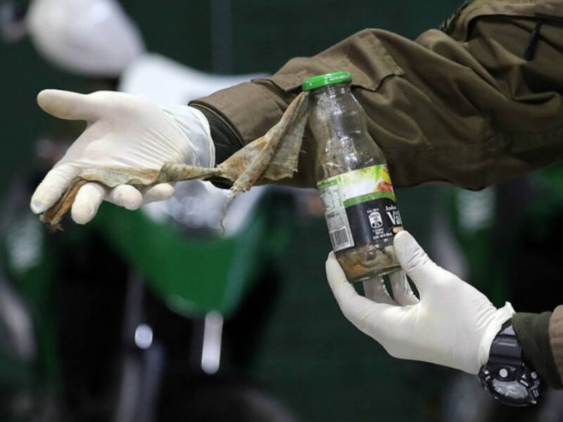 Según la información policial, procedieron a ingresar al establecimiento, logrando la detención de cuatro sujetos que presentaban "olor a combustible en sus mochilas". Uno de ellos portaba un cuchillo.