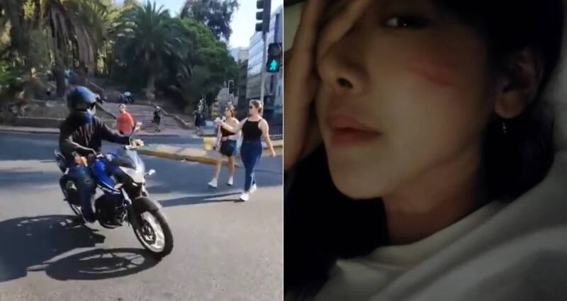 Tal como se puede ver en un video que publicó en sus redes sociales, durante el último fin de semana fue atacada por un motochorro en pleno centro de Santiago.