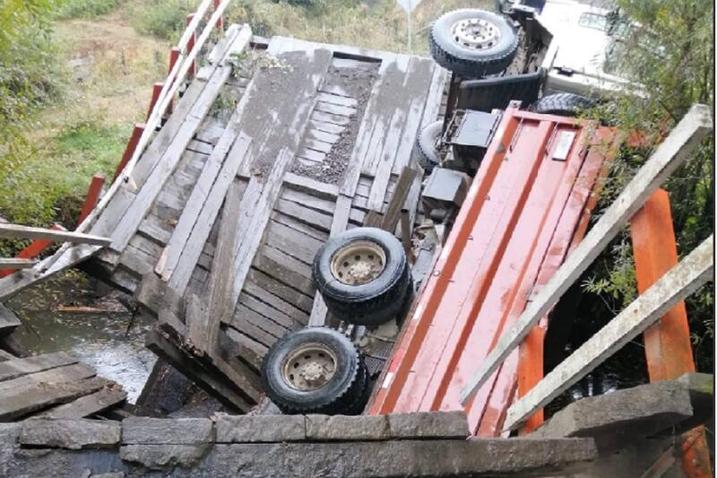 La estructura de madera solo soportaba hasta cuatro toneladas, por lo que desplomó junto con el vehículo.