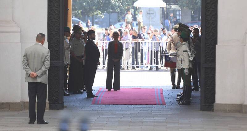 Mandatario se detuvo frente a los funcionarios que lo reciben a diario en La Moneda.