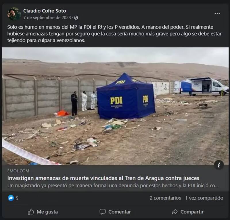 Desde entonces, ha publicado opiniones controvertidas y a favor de los criminales. Por ejemplo, cuando salió la noticia de que estaban investigando amenazas de muertes del Tren de Aragua a jueces de la zona norte, el abogado escribió que “solo es humo en manos del Ministerio Público, la PDI, el Poder Judicial y los P vendidos”.