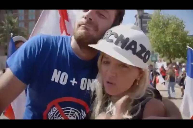 En el registro se ve a Sebastián Izquierdo, miembro de la autodenominada "Vanguardia" del Rechazo, y la ex candidata a diputada UDI, Loreto Letelier.