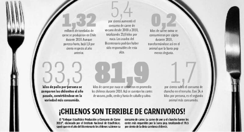 Con el tiempo los chilenos se han transformado en verdaderos carnívoros, tal como lo demostró el "Enfoque Estadístico Producción y Consumo de Carne 2010", que sapeó que durante el año del Bicentenario, la barra pop consumió carne más que nunca en la historia.