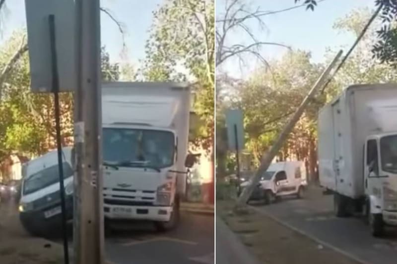 Registran día de furia de camionero: intentó atropellar a conductor y botó poste