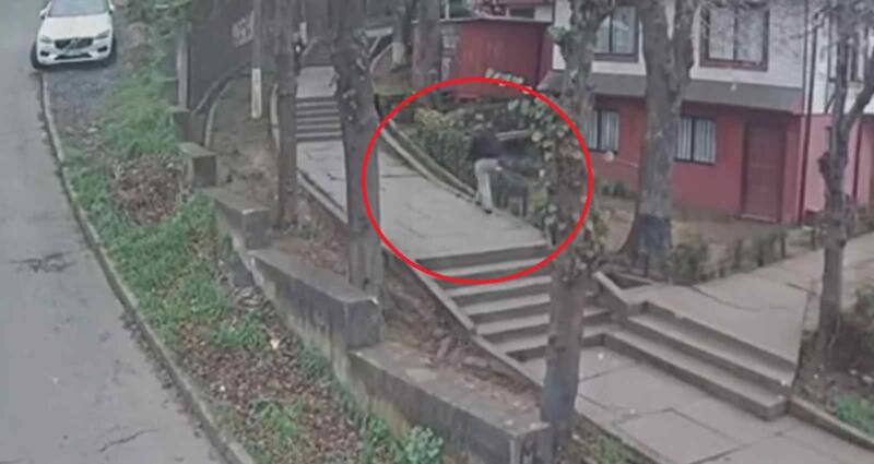 Un impactante video muestra el momento exacto en que un sujeto empuja a un adulto mayor que terminó cayendo desde una escalera en la comuna de Lota, en la Región del Biobío.