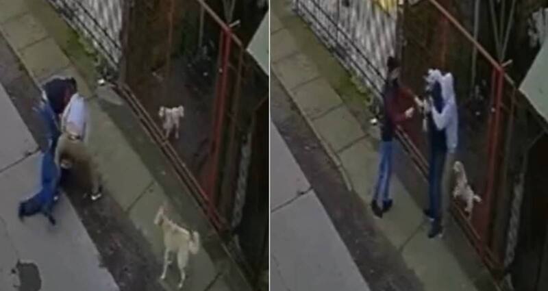En las imágenes se ve el momento exacto en que la víctima es abordada por dos delincuentes, quienes lo tiran al suelo y proceden a revisar entre sus prendas para sustraerle dinero.