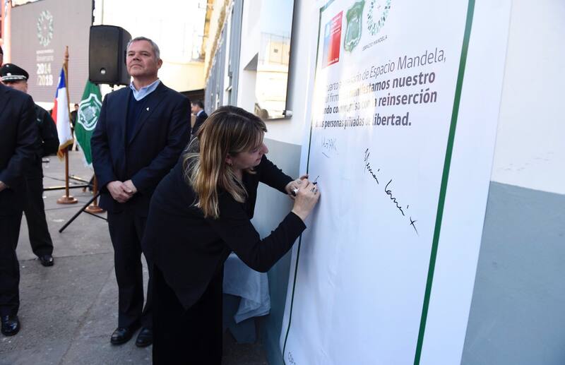 La directora nacional de Gendarmería, Claudia Bendeck Inostroza, junto al ministro de Justicia y Derechos Humanos, Hernán Larraín Fernández y los subsecretarios de Justicia, Juan José Ossa Santa Cruz y de Derechos Humanos, Lorena Recabarren González, entre otros, encabezaron la ceremonia y anunciaron la ampliación de Mandela.