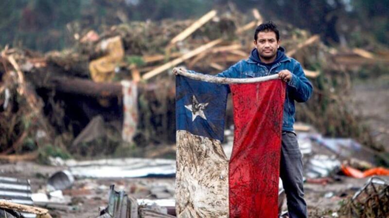 El símbolo patrio emuló a la famosa bandera que expuso Bruno Sandoval, horas después del terremoto de 8.8 que ocurrió un 27 de febrero en la zona centro sur, hace exactamente 10 años atrás.