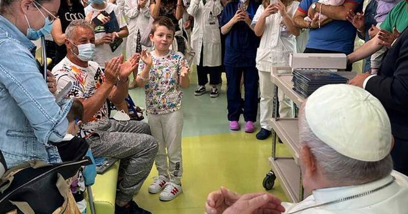 El líder de la iglesia católica se ve muy animado, saludó a los familiares de los niños internados y además agradeció al personal médico que está asistiendo a los enfermos.
