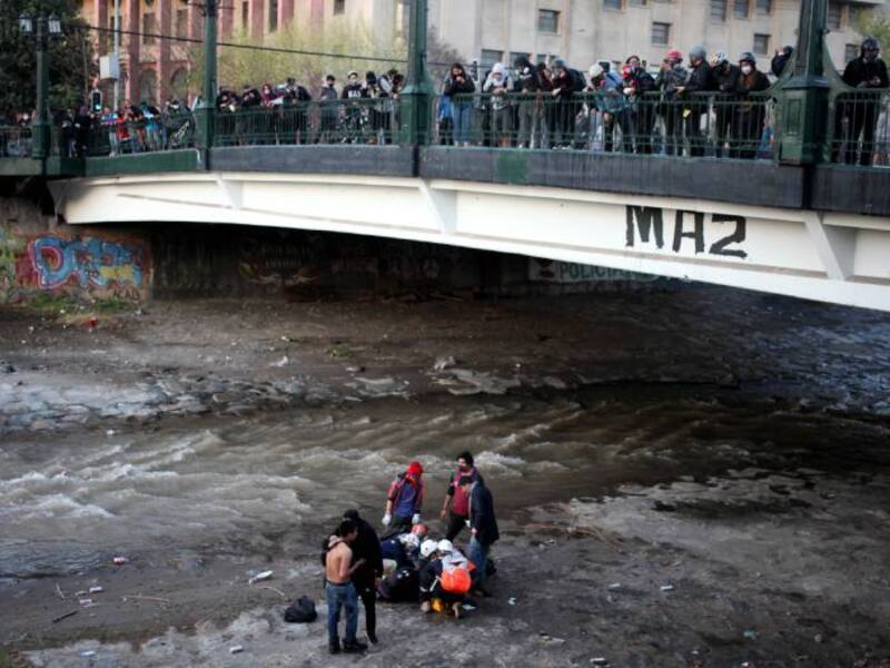 En este contexto, y por razones que se investigan, un manifestante cayó al lecho del Río Mapocho desde el Puente Pio Nono.