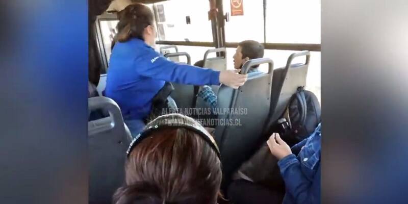 Luego de varios minutos, llegó al transporte personal de Carabineros, que bajaron al joven del bus y lo detuvieron.