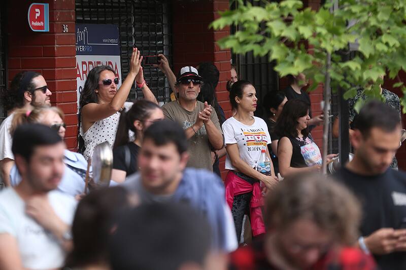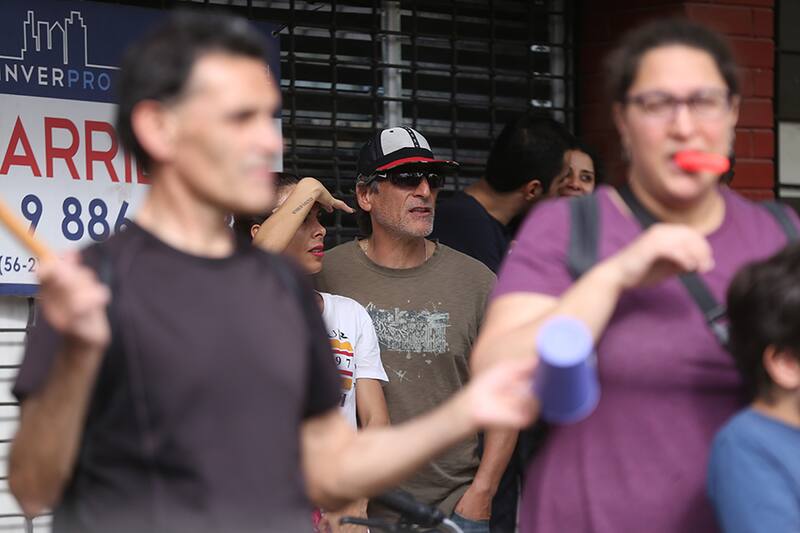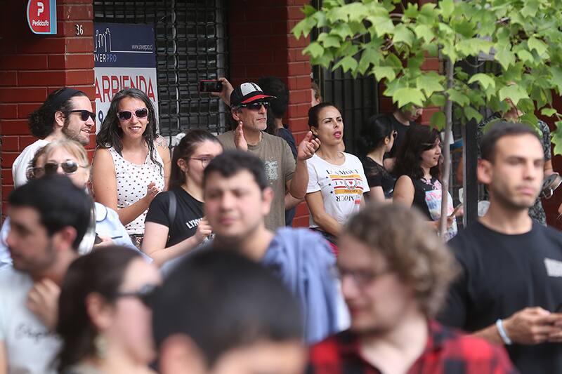 A un costado de la masa de gente que copaba la unión entre Apoquindo y Los Militares, el adiestrador de Colo Colo lucía sus gafas oscuras de alta gama y saltaba al ritmo de los gritos, que pedían más justicia social para el país.