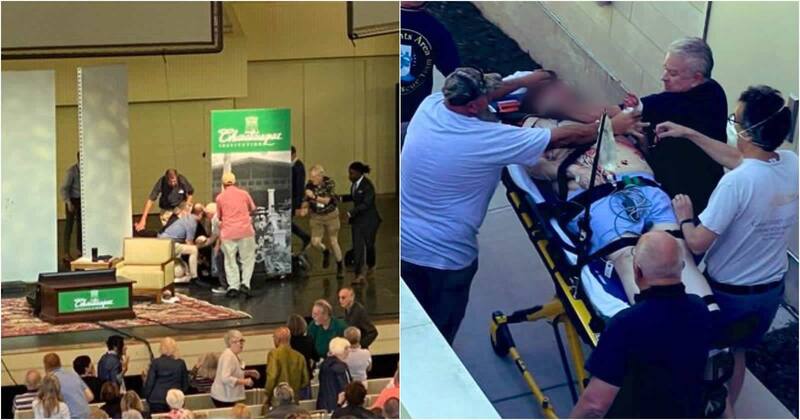 Un reportero de National News vio a un sujeto confrontar a Rushdie en el proscenio, donde comenzó a golpearlo con un cuchillo en el cuello.