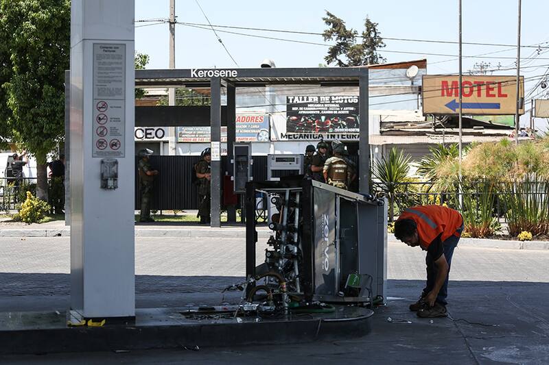 Pero la violenta jornada en la comuna no terminó ahí. Además de los buses quemados, hubo un supermercado saqueado y se atacó la bencinera Copec, ubicada en el paradero 27.