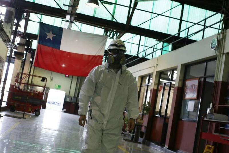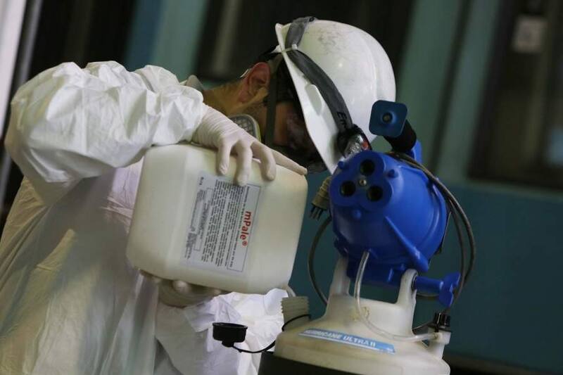 Fabián se prepara con todas las medidas de seguridad: traje especial, mascarilla, lavado de manos, alcohol gel, entre otros. Ya con la vestimenta adecuada, comienza a preparar el químico que se utiliza para este tipo de procesos.