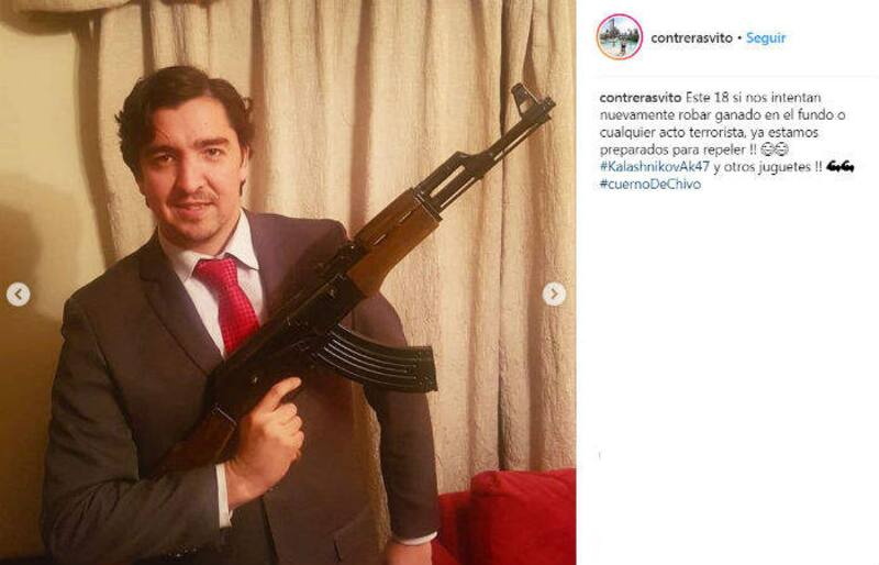 Este martes, "Vito" volvió a publicar una serie de imágenes en la web. "Este 18 si nos intentan nuevamente robar ganado en el fundo o cualquier acto terrorista, ya estamos preparados para repeler", advirtió, junto a distintos imágenes donde porta un supuesto fúsil soviético AK-47.