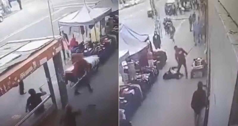 Tal como quedó registrado por las cámaras de vigilancia, el trabajador salió del local y persiguió a los acusados. Tras darle alcance, procedió a golpear repetidamente a uno de ellos.