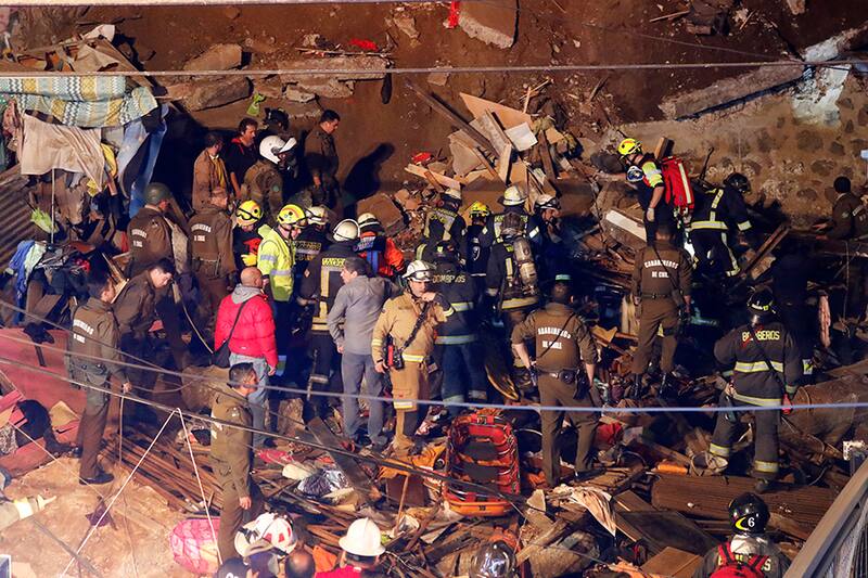 El desplome ocurrió a las 19.55 horas en la intersección de las calles Huito con Aldunate, en el cerro Bellavista. Al cierre de esta edición, aún no se cuantificaban las víctimas atrapadas bajo los escombros.