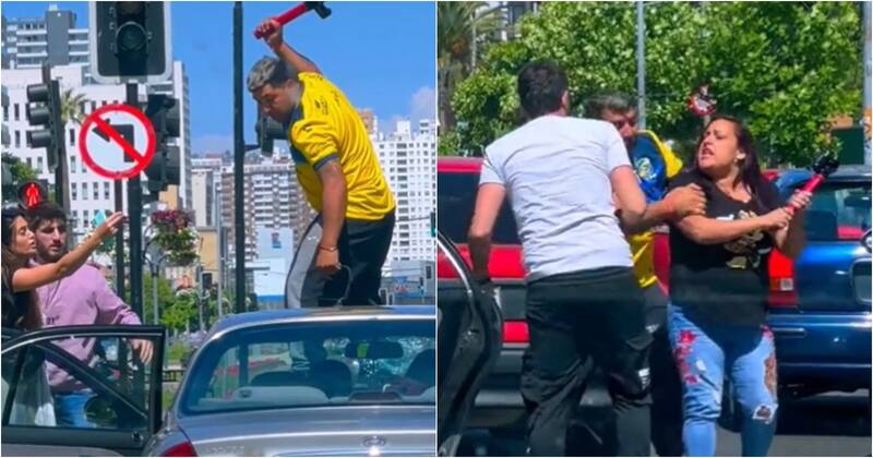 El primer conductor, que utilizaba una polera amarilla, le arrebató el martillo y le quebró al segundo auto el parabrisas. “No creo que sea de plástico”, le respondió entonces otro de los extranjeros que captaron el video.