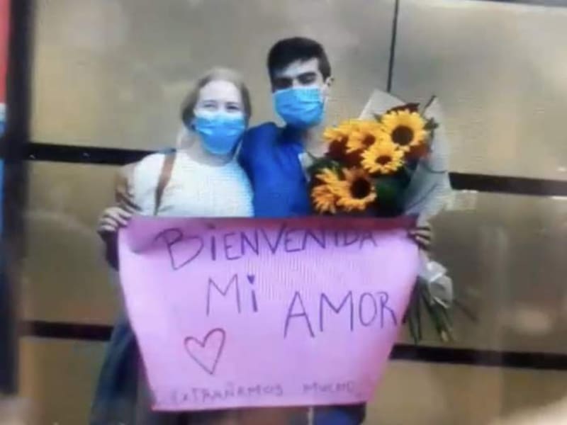 Tras la reapertura de la frontera, el enamorado chileno esperó ansioso a su pareja tras estar un año sin verse. Expertos señalan que el ingreso de extranjeros al país no debería ser riesgoso si se toman todas las medidas.
