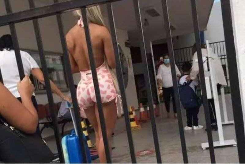 Una particular situación ocurrió en las redes sociales. Una mujer, Vanessa Medina, fue a buscar a su hijo al colegio ubicado en la localidad de Santa Cruz de la Sierra. Sin embargo, ella se acercó al establecimiento vistiendo un diminuto conjunto rosa, lo que llamó la atención de una persona que le sacó una fotografía viralizada rápidamente en las redes sociales.