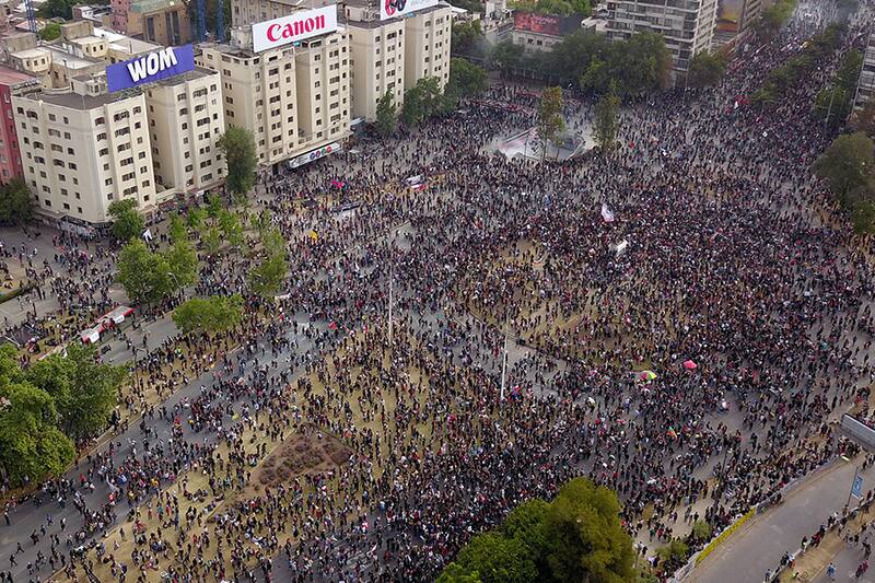 A pesar del fuerte sismo, que no dejó personas heridas ni daños materiales de relevancia, miles de personas se dejaron caer durante la tarde de ayer en Alameda para manifestarse por las desigualdades sociales, en protestas que se desarrollaron durante todo el día y que terminaron con graves desmanes en Santiago y Viña del Mar.