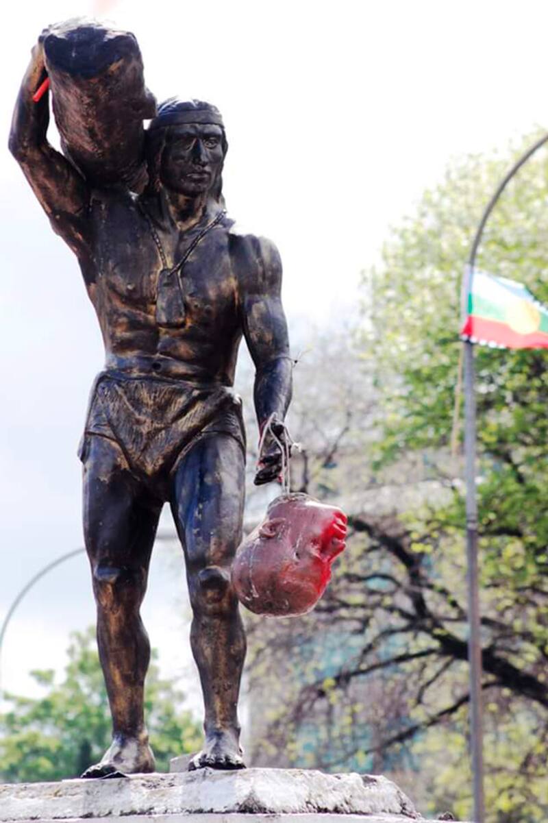 Luego de aquello, empezó a viralizarse la imagen del monumento a Caupolicán, que tiene 2,5 metros de alto y es de bronce fundido, supuestamente con la cabeza de Pedro de Valdivia en una de sus manos, generando diversos comentarios en Twitter. "El líder mapuche lo hizo, aunque en la otra vida", fue una de las reflexiones. Eso sí, el rostro era de Portales.